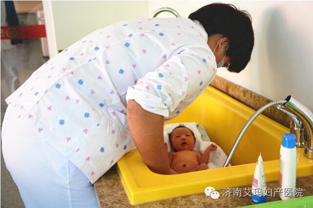 护师为宝宝洗澡,宝宝看着护师直笑,这个澡洗的很开心啊~ ~