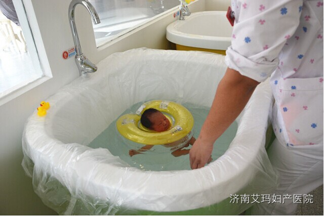 洗完澡后,护师为宝宝做抚触,并且还游了泳呢,以后也要做个运动达人哦!