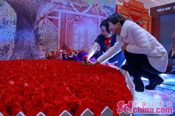 而数千朵火红的玫瑰免费发放,则让很多过往情侣大呼是在“浪漫派对”。