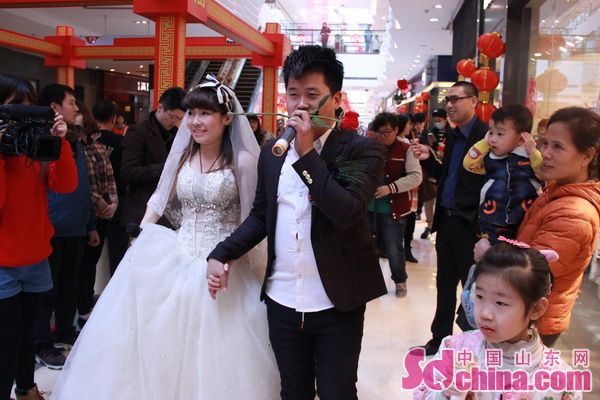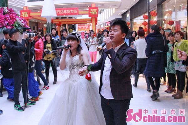 【中国山东网】济南商场内情人节前婚纱情歌快闪秀浪漫