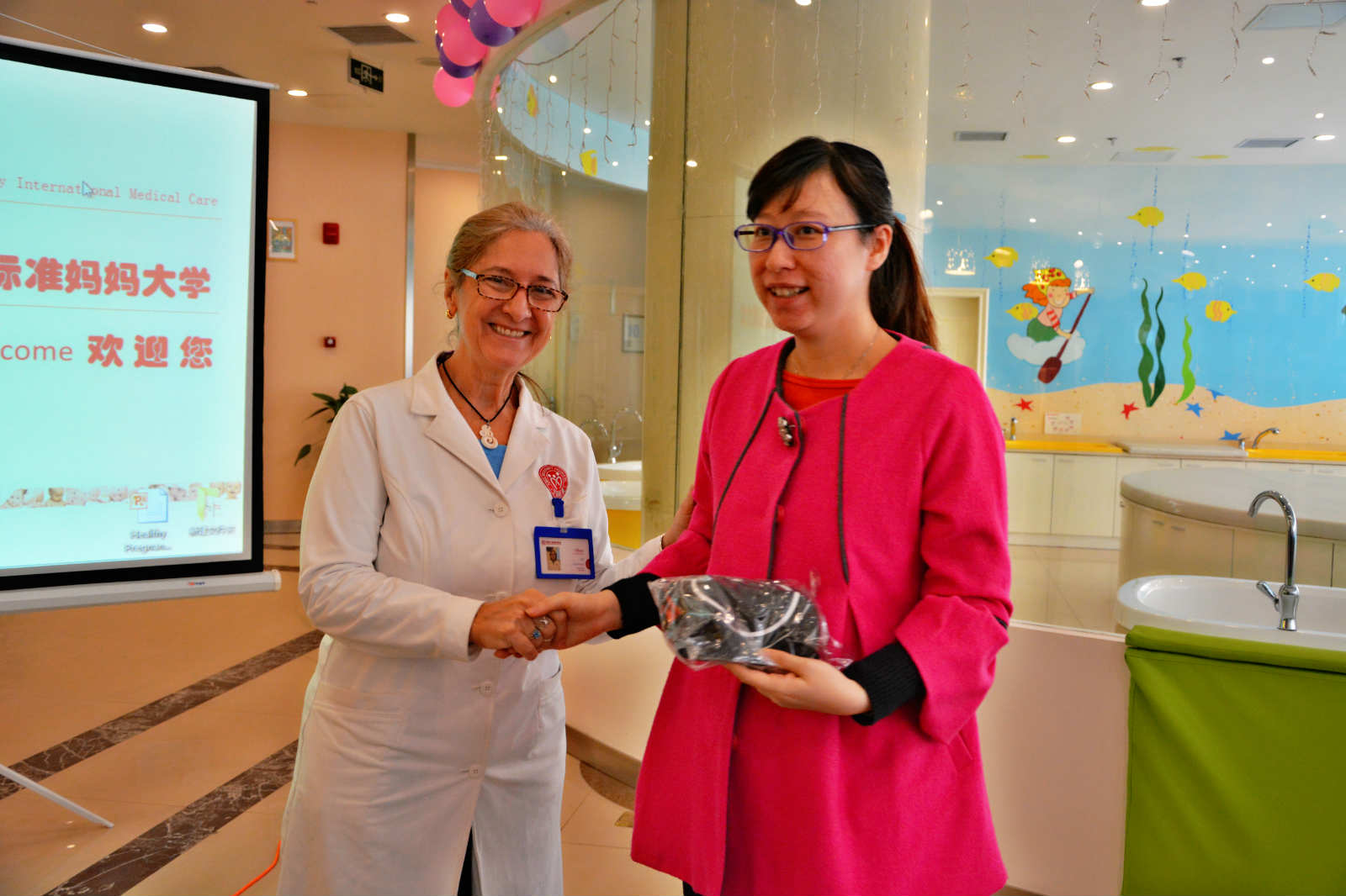 Lillian字句的为大家讲解,还不忘聊几句美式幽默。课后的问答环节,孕妈们也跟Lillian混熟了,还有不少题外话,中美差异碰撞,“Duang”。