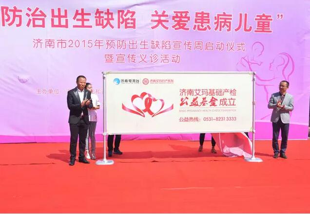 2015年9月12日,山东省卫计委联合济南艾玛妇产医院成立基础产检公益基金。