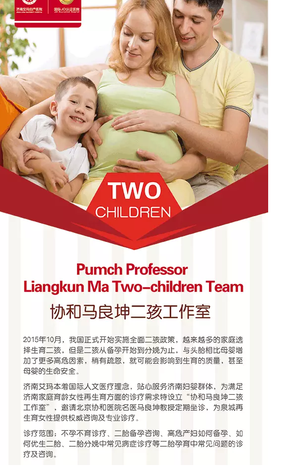 2016年3月19日,科主任医师马良坤教授二孩工作室在济南艾玛妇产医院成立。该工作室旨在为准备生二孩的准爸妈们提供二孩备孕及孕育中常见问题咨询、二胎孕育、分娩中常见病症诊疗等服务。