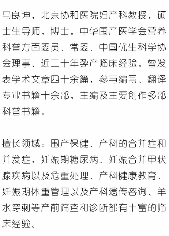 同时,马教授是北京妇产专家工作站签约专家、中华围产医学会青年委员、中国优生科学协会理事。她热心教学工作,并利用业余时间创作了大量的孕产专业书籍,她精通英语、日语,曾赴美国进修学习产科遗传。