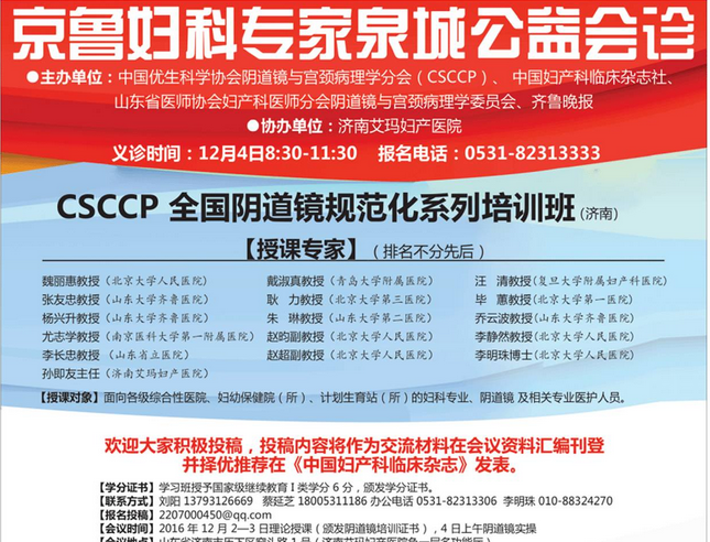 基于此,12月2日,由中国优生科学协会阴道镜与宫颈病理学分会(Csccp)、《中国妇产科临床杂志》社、山东省医师协会妇产科医师分会阴道镜与宫颈病理学委员会、齐鲁晚报主办,济南艾玛妇产医院协办的“CSCCP阴道镜规范化(手拉手)系列培训班--济南站”在艾玛妇产启动。来自济南市及山东省内外各级医疗机构的近200位医护工作者参加培训学习。