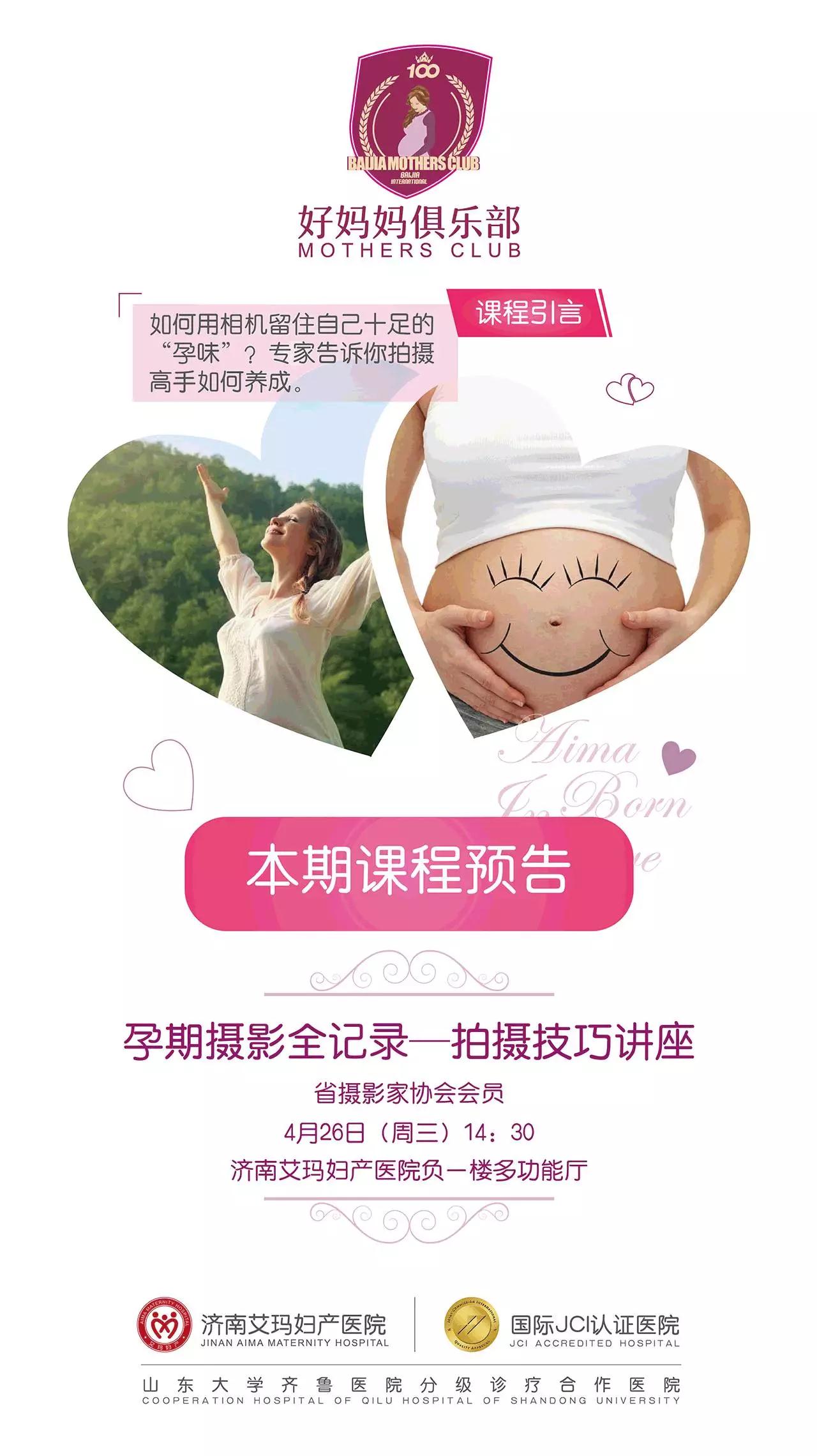 4月26日来艾玛好妈妈俱乐部吧!我们邀请到邀请山东省摄影家协会会员、佳能首席摄影师李运健先生来现场教孕妈们为自己拍摄孕期的美照,准爸爸也可以来学习哦!
