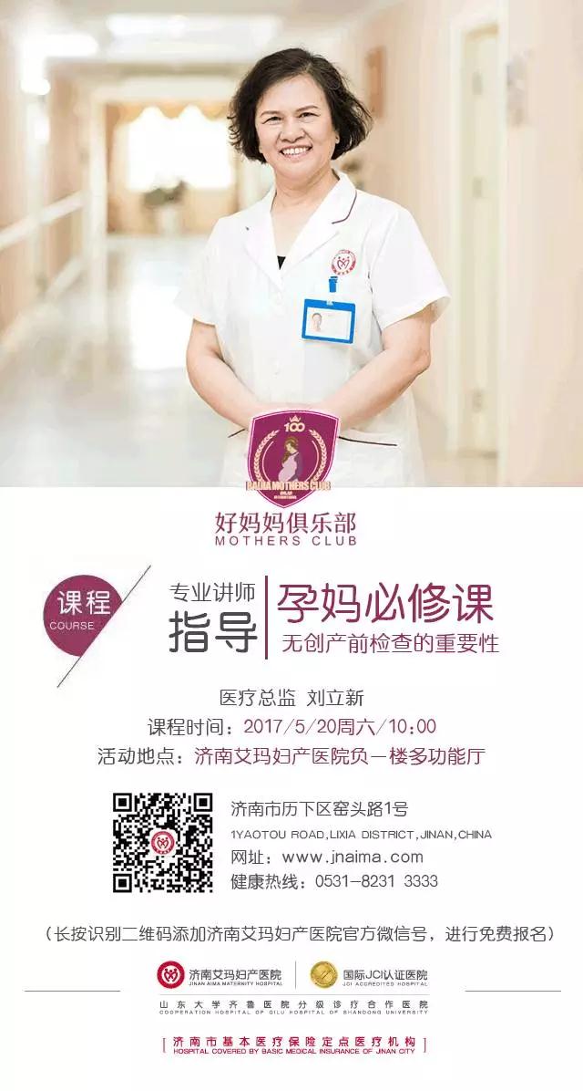 5月20日(本周六)上午10点,由齐鲁晚报联合济南艾玛妇产医院共同举办的“好孕来”孕产体验营系列活动将再次带领宝妈们走进艾玛妇产,体验专家讲座、医院参观、月子餐试吃、现场答疑等环节。我院医疗总监刘立新将为大家带来母婴健康知识讲座《无创产前检查的重要性》,给宝妈科学专业的产前检查指导。