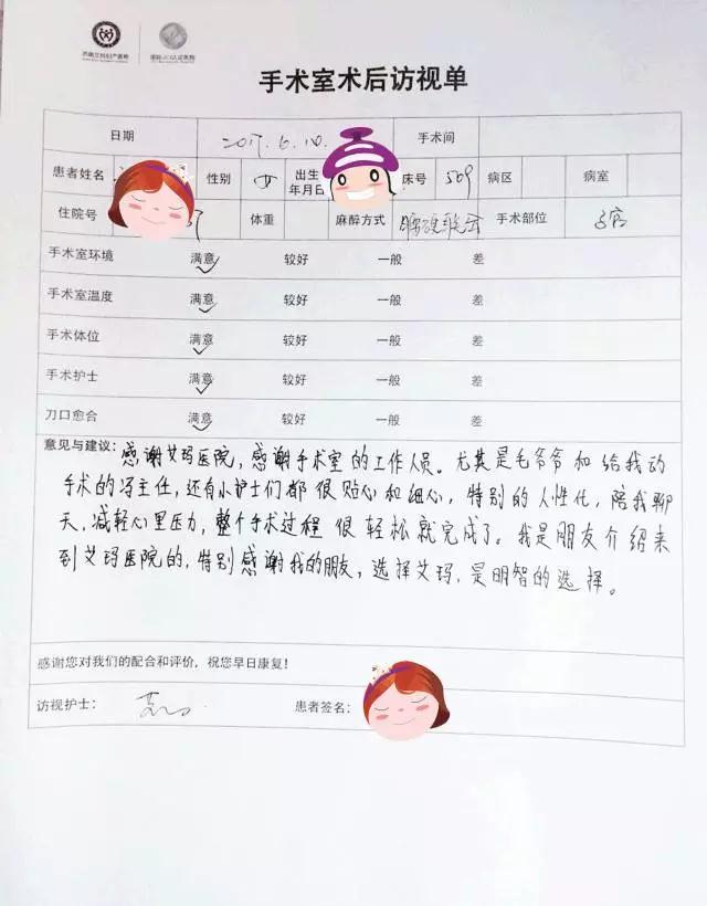 509房间的宝妈刘女士,通过朋友介绍选择在艾玛生产,这是次很舒心的生产体验,她在术后访视单上写下:
