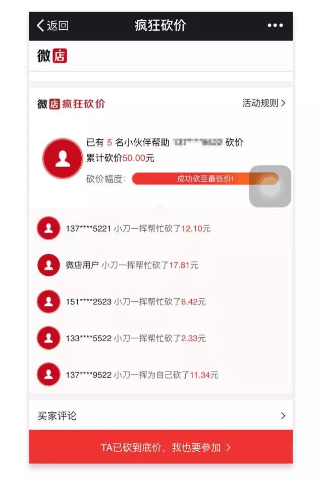 微店砍价活动 | 助力+4,集齐四个小伙伴,就“砍价”成功啦!