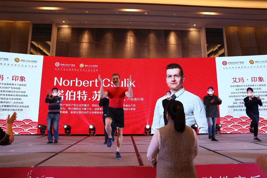 艾玛集团健康顾问Norbert先生以身教学,带领现场的宝妈起跳孕律操,舒展身心。