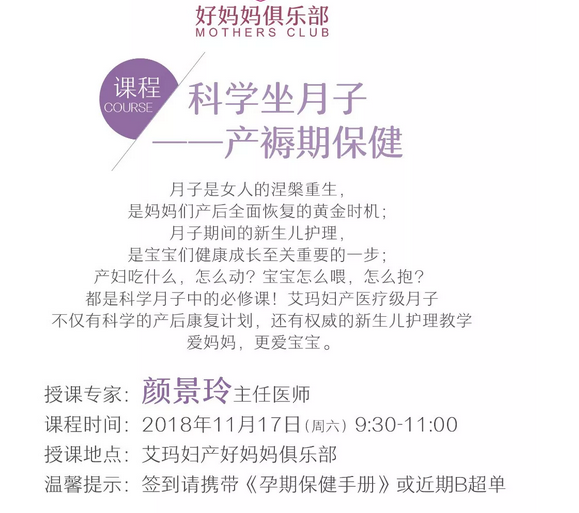 11月17日,济南艾玛妇产医院住院部颜景玲主任,为孕妈咪们分享如何科学坐月子,走出误区,不再盲目~
