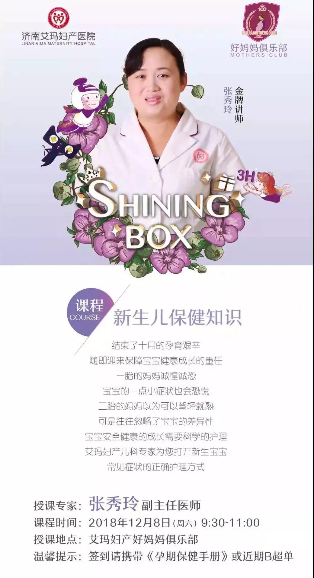 12月8日(周六)上午,济南艾玛妇产医院妈妈俱乐部课堂,经验丰富的儿科主任为您讲解新生儿保健的方法,让年轻爸爸妈妈不再手足无措,从容、自信的迎接宝宝成长!