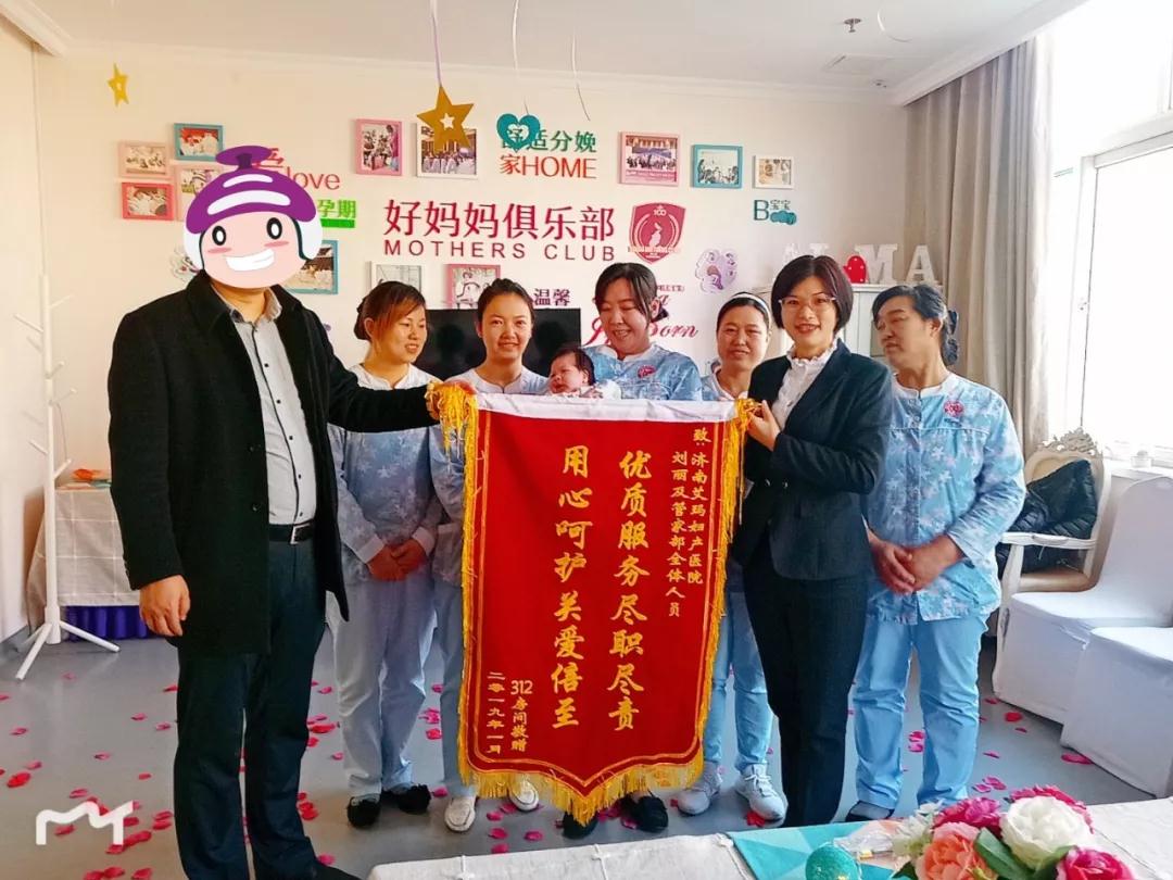近日,艾玛优质服务再获赞许。满月宝宝冬冬的生日派对,管家部刘丽主任,客服部马凤柳经理以及治疗室护士长王盟主任出面为冬冬宝宝送上满月祝福,宝爸宝妈为艾玛妇产送上锦旗,感谢