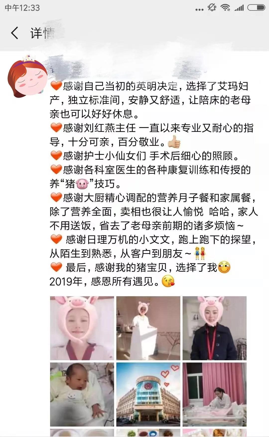近几天,许多宝妈都带着自己心爱的宝宝,离开医院,为自己的分娩之旅画上了个圆满的句号。在这即将分别的时刻,宝妈们纷纷将自己的经历分享在自己的朋友圈上,为艾玛妇产深情“告白”。