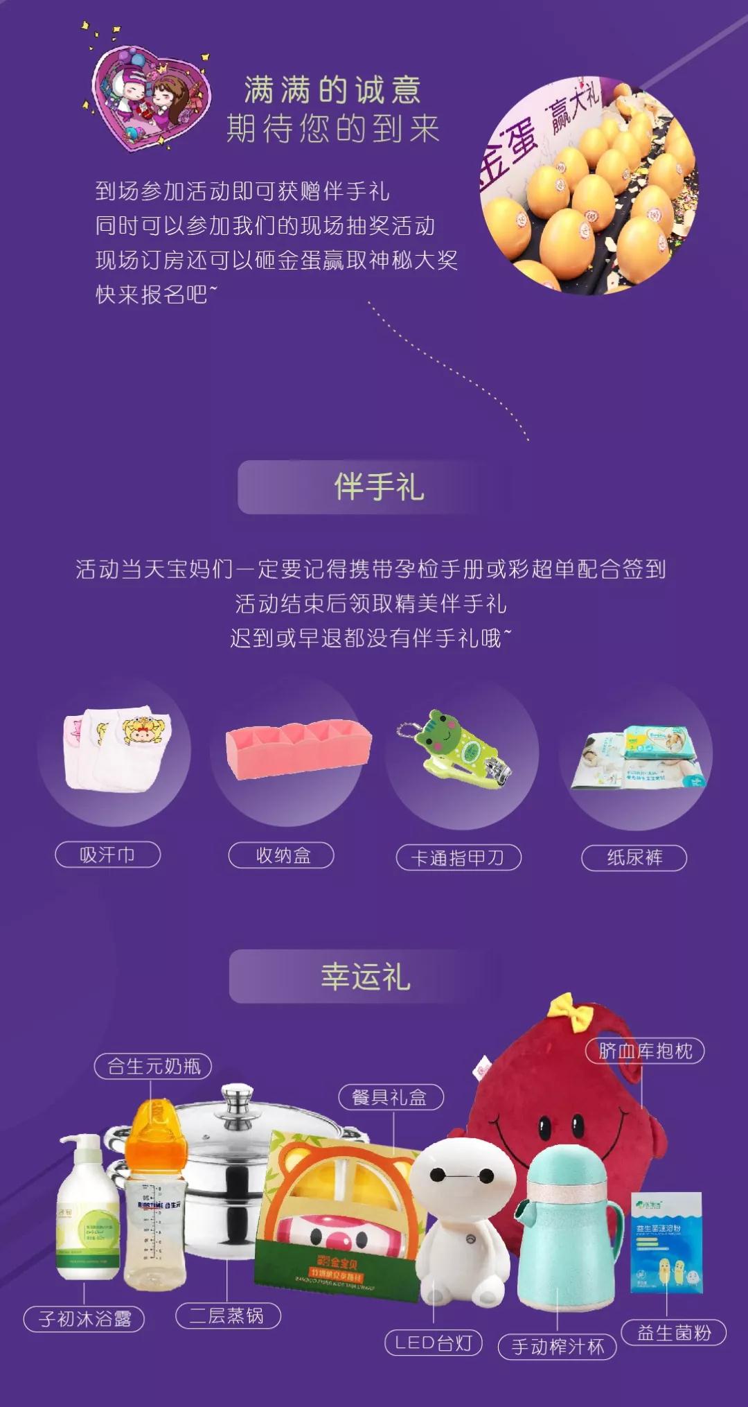 除了上述的四大精彩亮点,我们还未到场的每位宝妈都准备了丰厚的伴手礼,以及活动互动礼和抽奖礼。宝爸宝妈们还在等什么?赶快做好满载而归的准备吧~