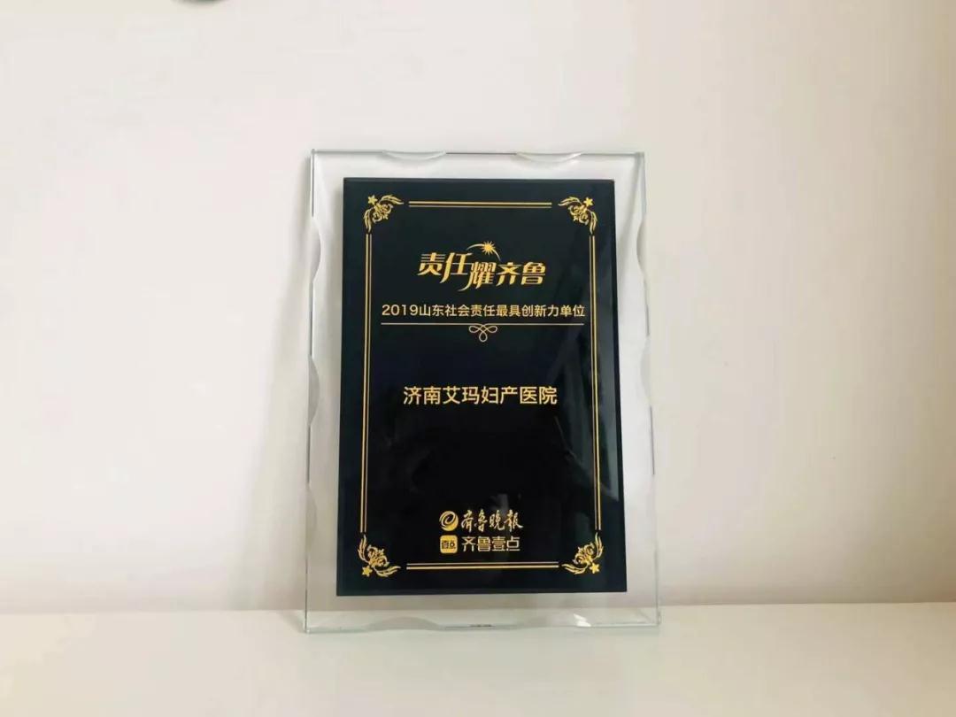 2020年1月4日下午,在2020齐鲁晚报·齐鲁壹点年度盛典上,济南艾玛妇产医院荣获 “责任耀齐鲁”2019山东社会责任具创新力单位。