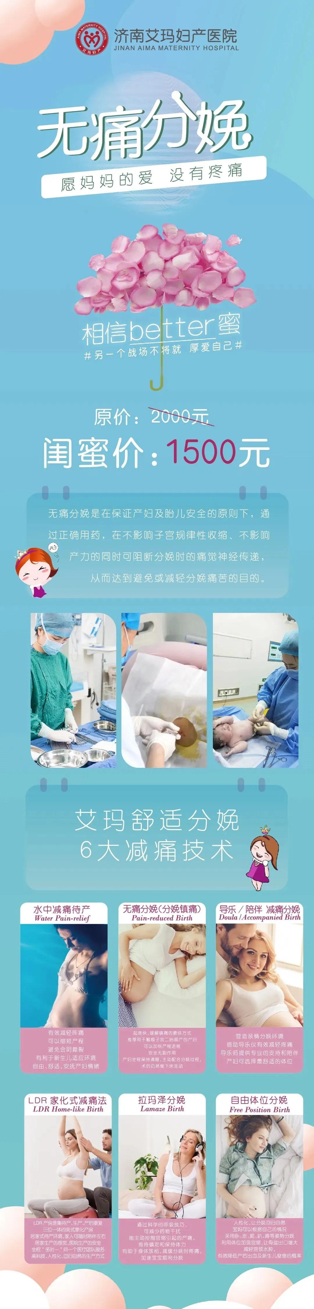3月艾玛闺蜜节,济南艾玛作为泉城宝妈的好闺蜜,推出无痛分娩优惠。