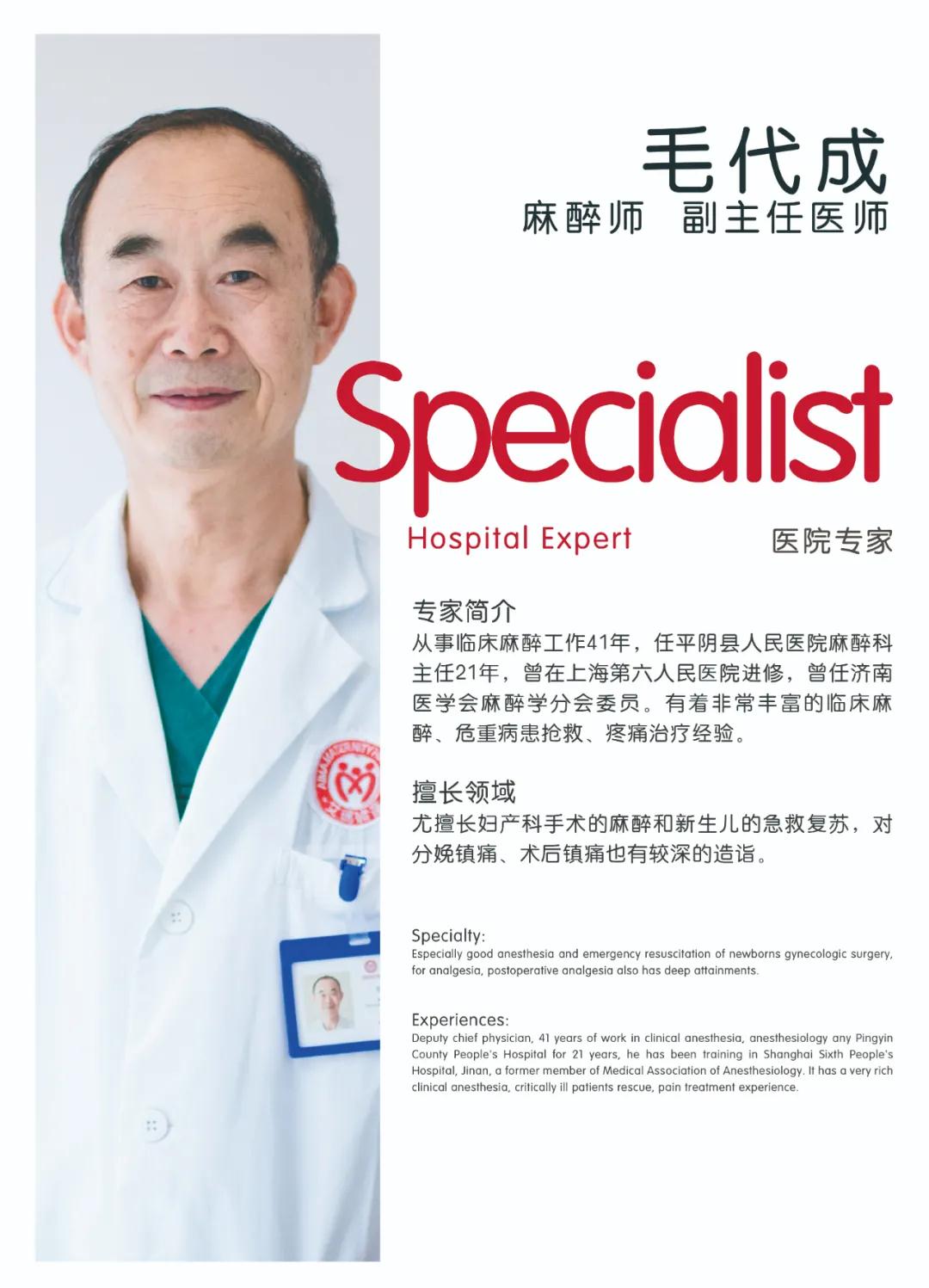 麻醉科主任毛代成领衔麻醉团队,全程管理的无痛分娩,可实现全程阵痛直至产后2小时。