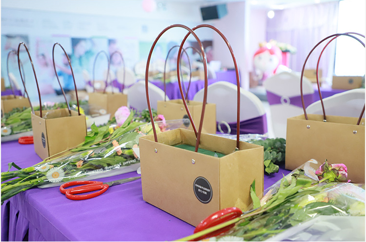 课程中,插花老师亲自指导,与宝妈们起手作花篮,过程中宝爸在边拍照,场面十分温馨。