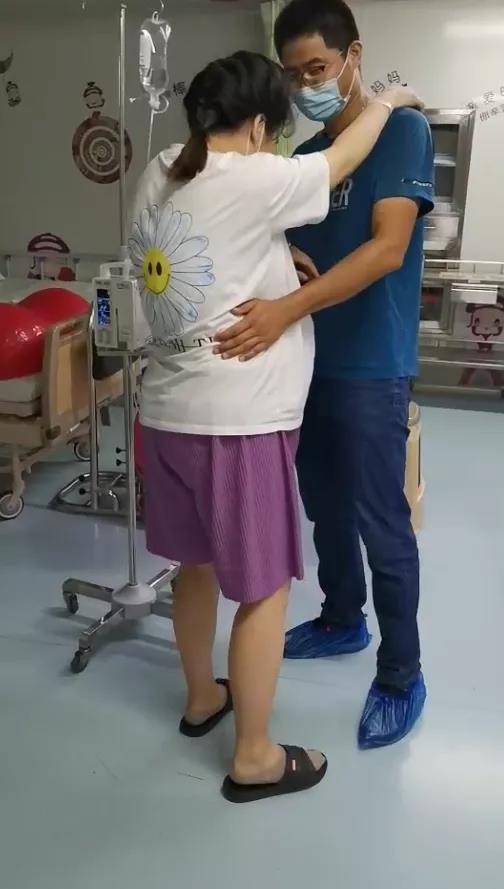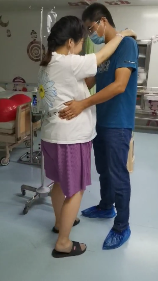 左、右、左、右……在艾玛妇产的产房里,伴随着优美的音乐,待产的宝爸宝妈跳起了“交谊舞”。