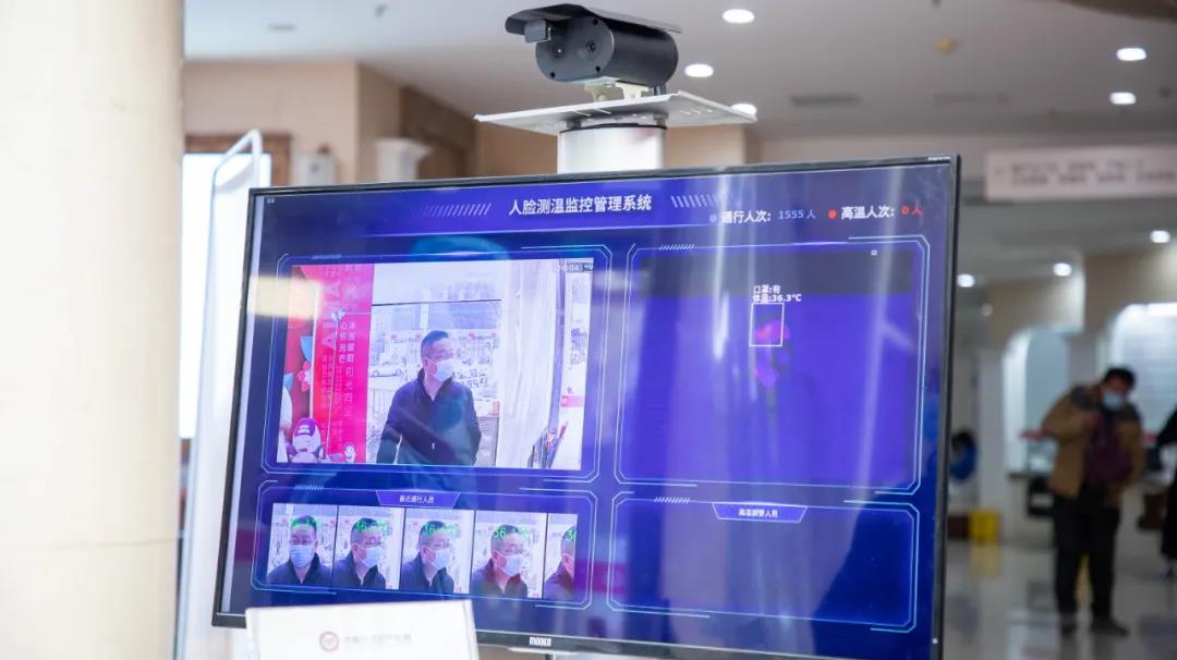 预检时除了运用传统的测温仪器进行测量体温,预检分诊处还设有人脸测温管理系统,第时间测出人员体温,进步严格筛查,加强防疫管理。