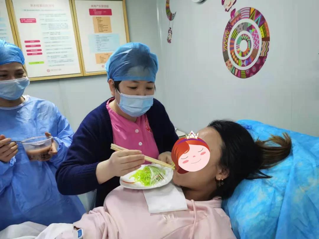 为了帮助宝妈能吃点东西,为接下来的分娩储存能量,助产士口口地喂着宝妈,让宝妈在分娩旅程中能尽量舒心。