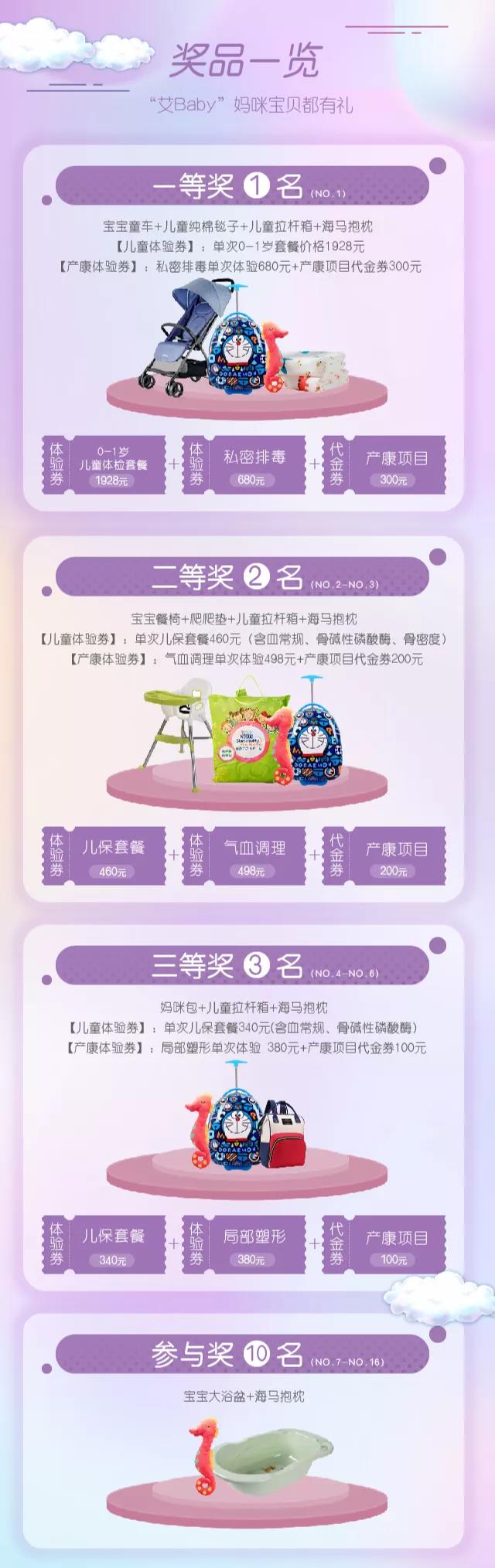 由于参与人数众多,我们就不将宝贝的萌照展示了,恭喜以上获奖的16位萌宝,根据名次的不同,可获得不同的奖品,奖品清单如下: