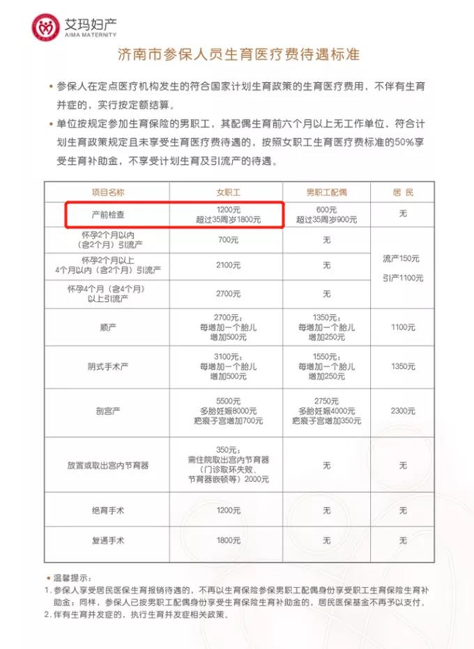 、参保人在生育保险定点医疗机构发生的符合国家计划生育政策的产前检查费用,实行按人头定额结算,标准为1200元,超过35周岁(含35周岁)怀孕的增加600元。