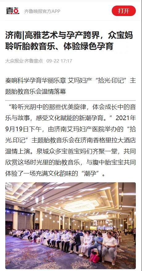 2021年9月19日,由我院主办的“拾光·印记”主题胎教音乐会,在济南香格里拉大酒店奏响,以特色胎教传递母爱的声音,让胎宝宝在妈妈的腹中就开始感受世界的美好。
