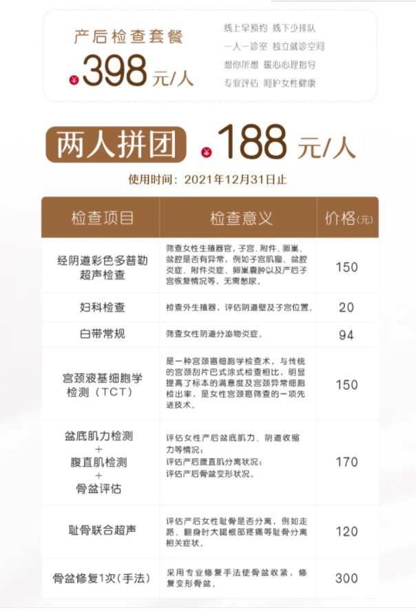 产后检查福利套餐